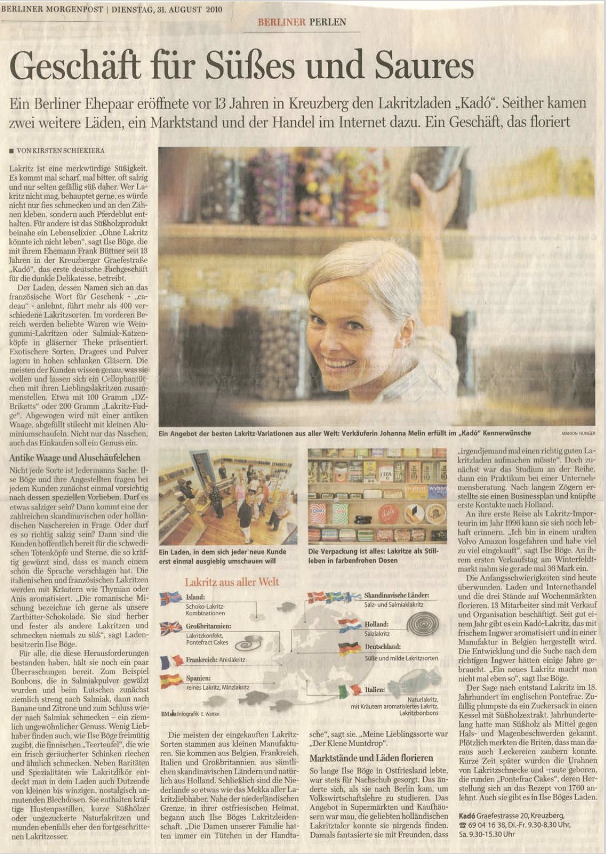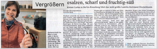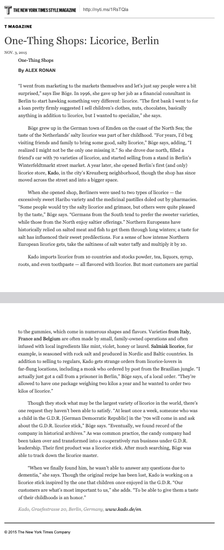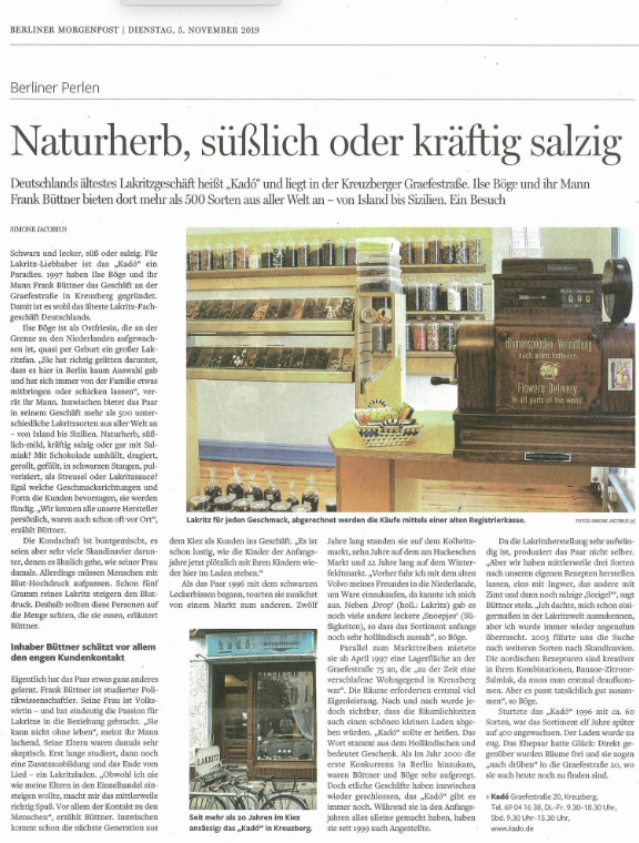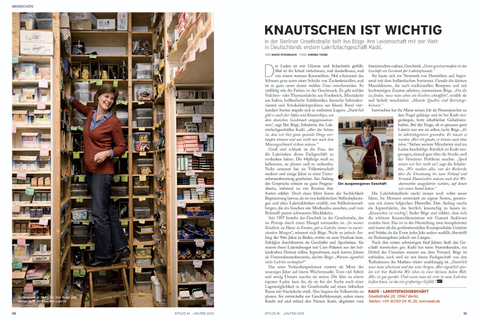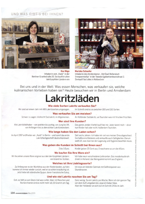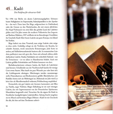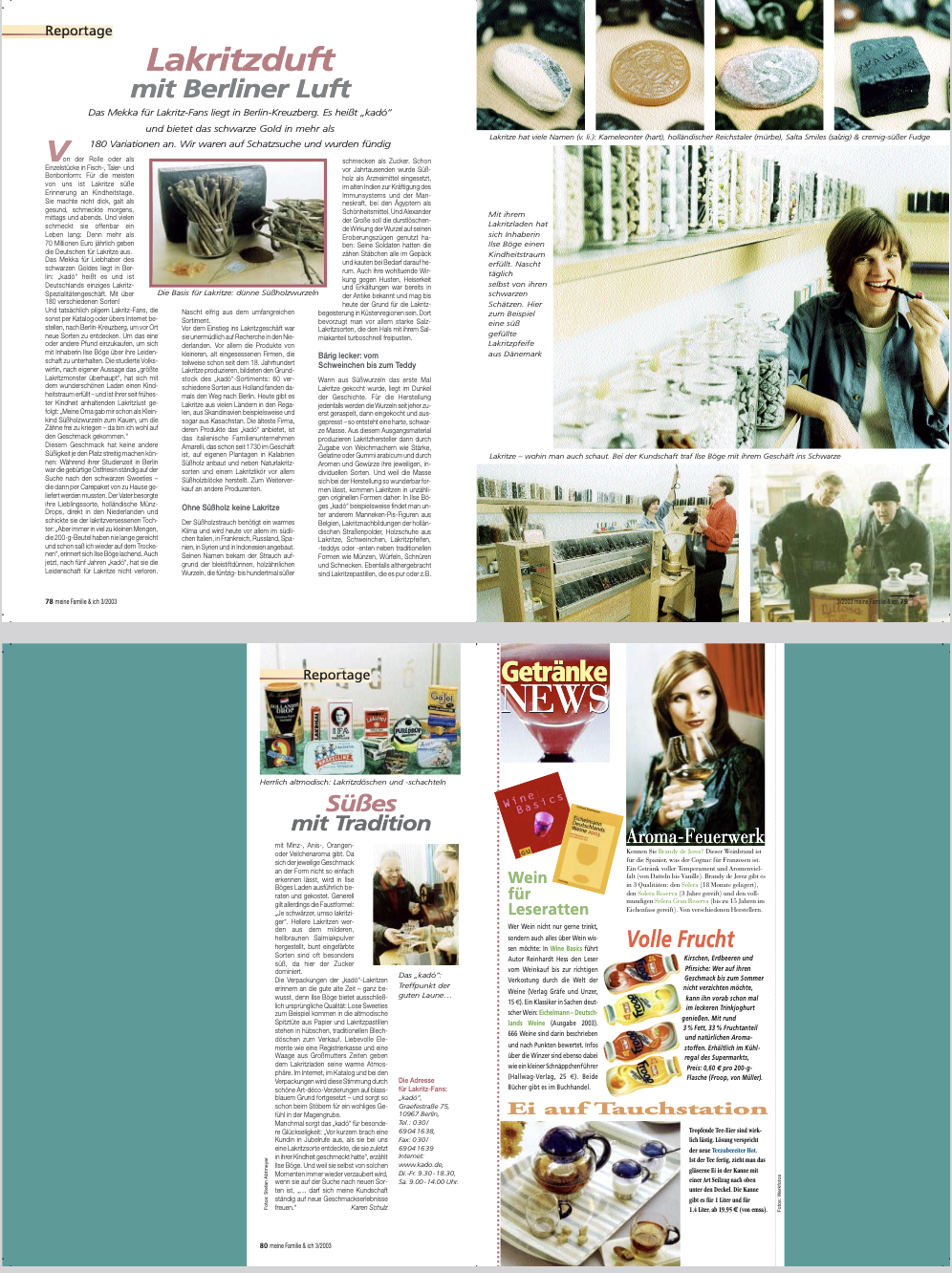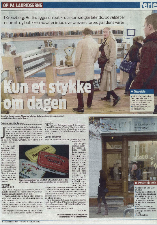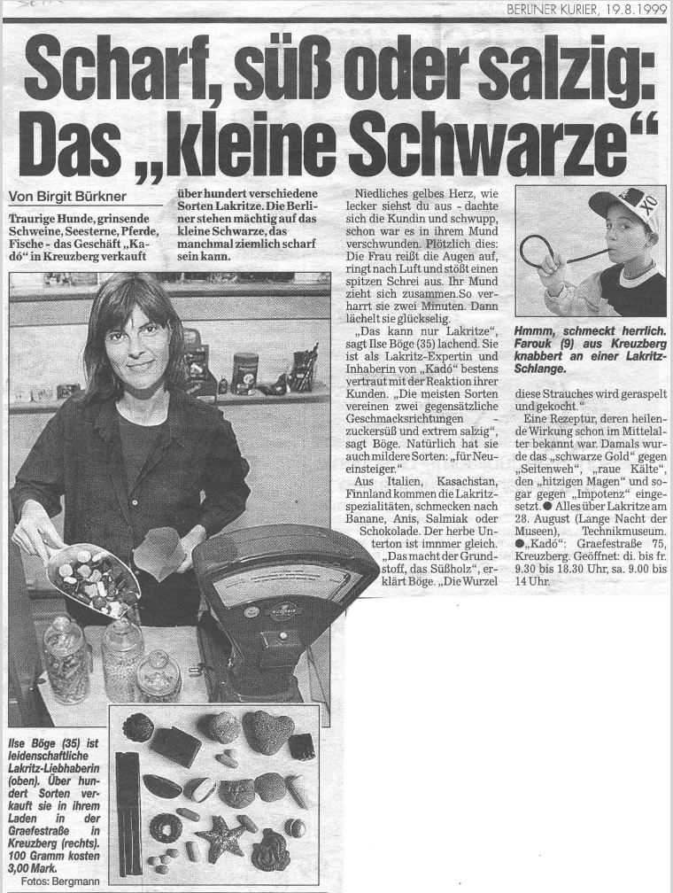 kadó was established in 1997 as the first specialized Liquorice Shop in Germany. This was discovered by some media, and they followed and reported on the store. Travel back in time with the help of our archive - radio, tv, press and web!